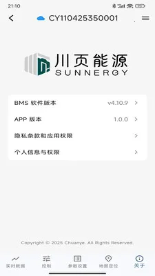 川页能源最新手机版可用于智能电池管理系统设备连接监控与管理,能查看电池电压、电流等实时数据,支持告警查看、参数配置、设备绑定、远程控制及固件升级,助用户高效掌握电池状态并维护。