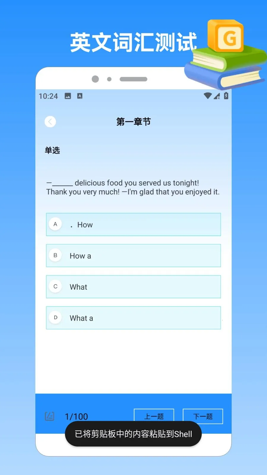 2. 在应用中找到学习题库,里面有诗词抢答、诗句闯关、英语口语练习等,可进行相关学习。