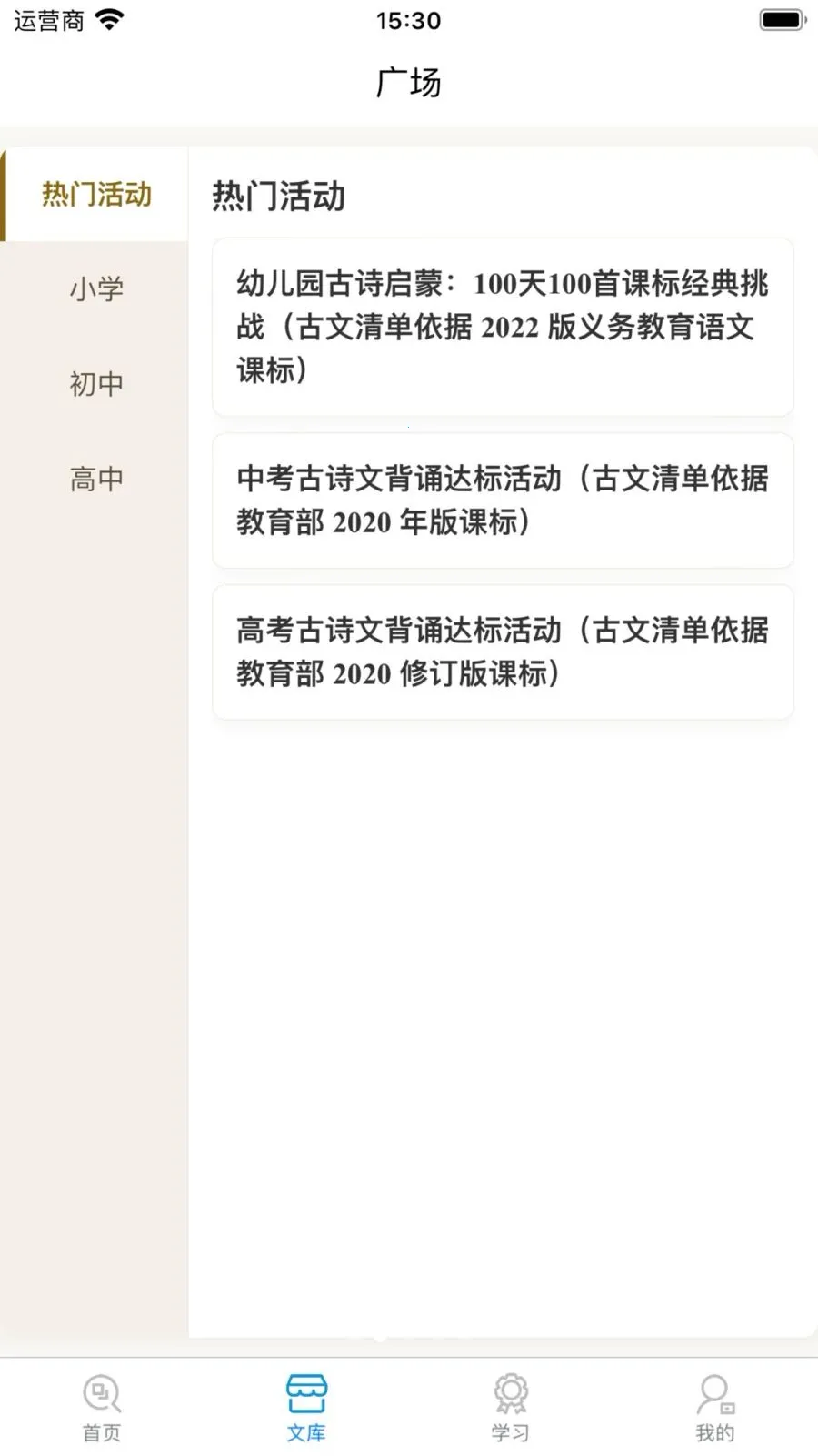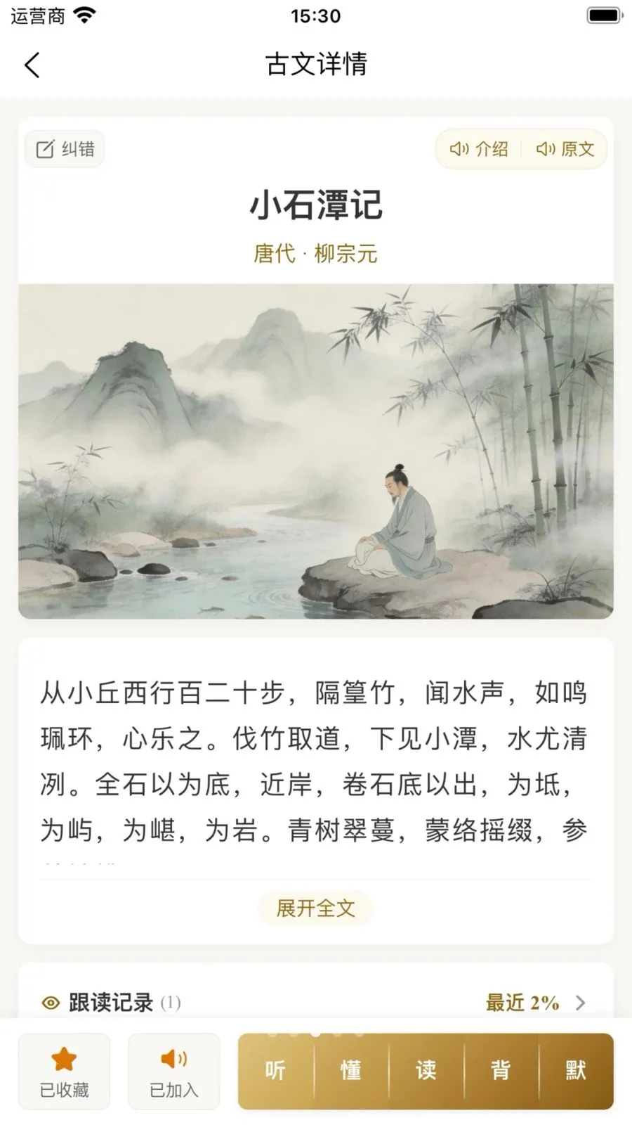 答:初始版本包含古文听懂、读、背、默等基本辅助功能。