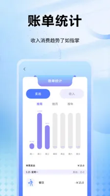 3. **账单呈现直观**:支出收入直观展示,提供日账单、月账单、年账单等,告别糊涂消费,避免成为月光族。