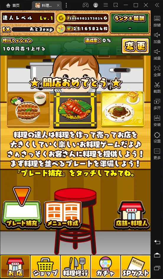 答:可在正规的安卓应用市场搜索“料理の達人”进行下载。