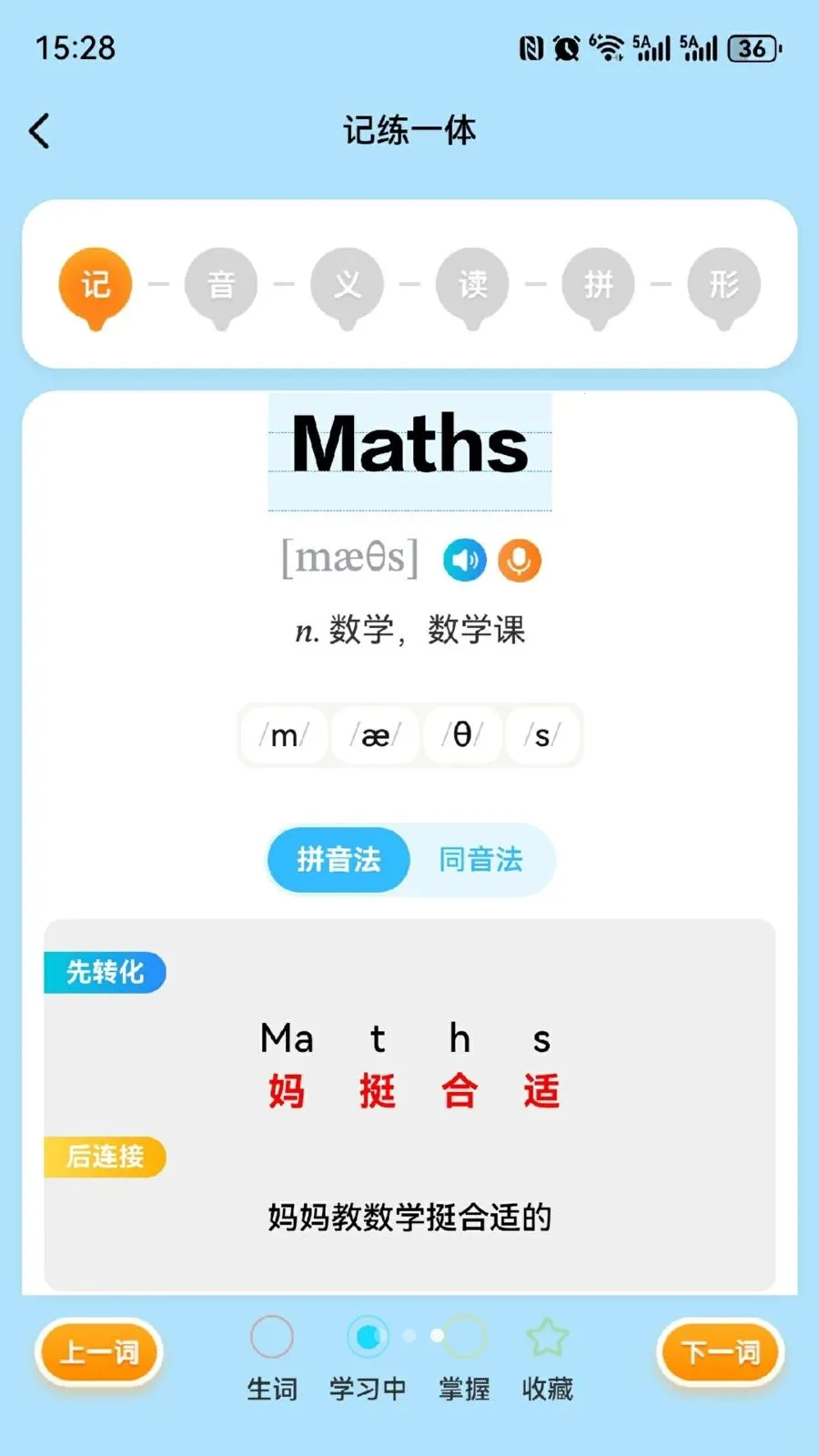 2. 软件运用拼读法、拼音法、词缀法、词源法和同音法这五种单词记忆方法,让孩子又快又好玩地记牢单词,正常使用至少节约一半记忆时间。