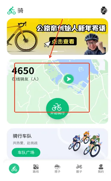 进入之后就可以在首页上看见到当前的在线骑友。
