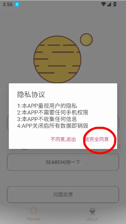 2. 打开app,点击“我完全同意”。