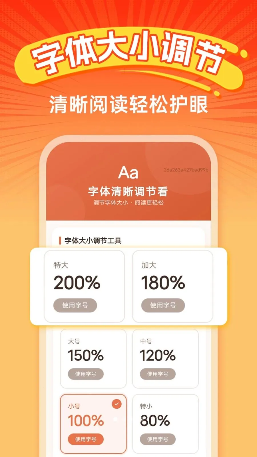 2. **字号调节超灵活**:支持200特大至80微小多档字号自由滑动调节,还能实时预览效果,找到最舒适的字号。