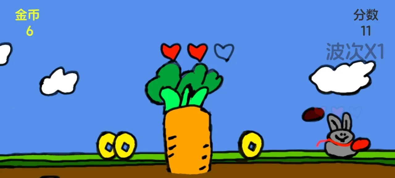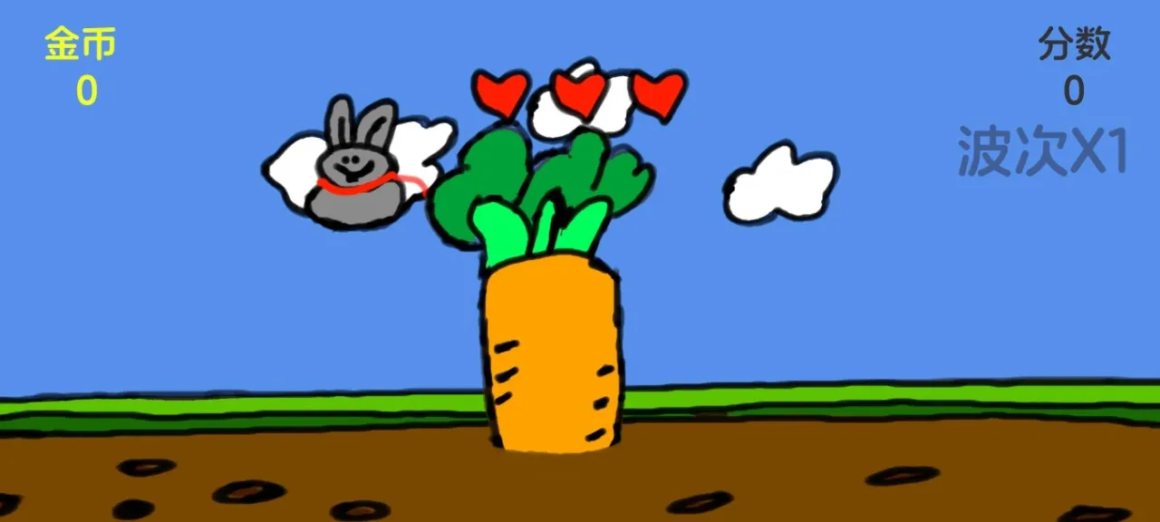 兔子和萝卜2026官方最新版本是一款兔子保护萝卜的塔防小游戏。玩家通过手机左右偏控制兔子左右移动,点击屏幕使其跳跃,踩敌人来保护萝卜。