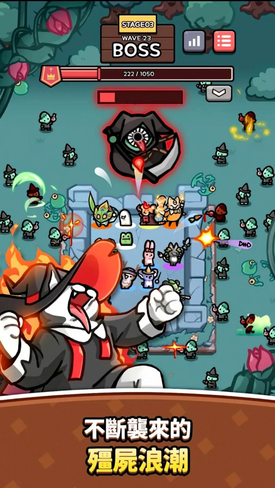 1. 打开游戏后,通过随机召唤英雄和魔法卡牌搭建防御阵容,这些英雄有仓鼠、青蛙、猫咪等多种动物法师,各有专属技能,合理搭配能逆转战局。