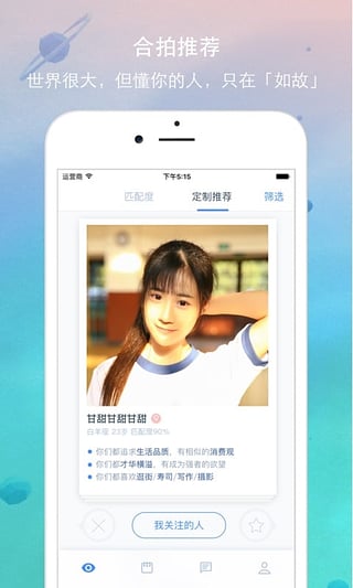 【如故推荐】根据内心属性、兴趣品位等大数据帮助你找到合拍的人