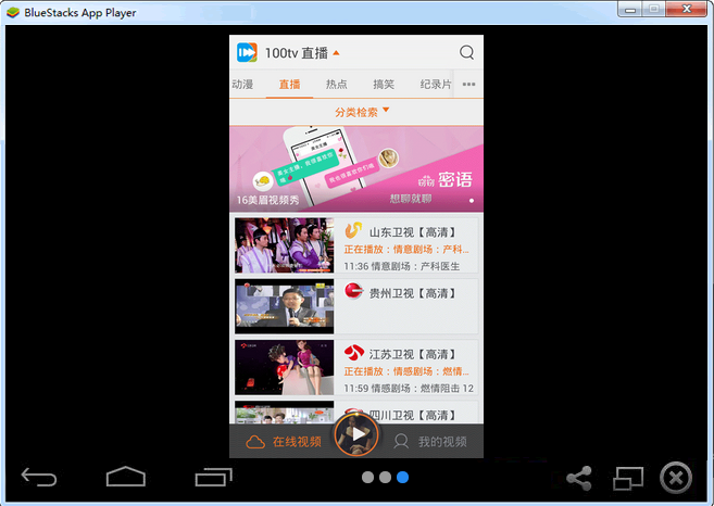 小编为大家带来100tv播放器电脑版。100tv播放器是一款功能强大的视频播放软件。操作也很简单。上面有非常丰富的视频资源。该软件内置了电影,电视剧,动漫,娱乐,综艺,音乐,体育,新闻各种资讯,同时支持RMVBMPEGAVIWMVMKVMP3各种媒体格式,用户不需要进行转码就可以轻松完成视频的播放。在使用的时候需要安装安卓模拟器,然后安装软件就可以开始看视频了。