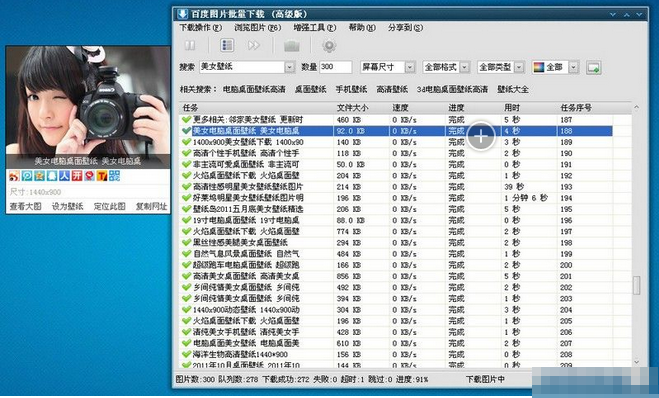 快速高效的图片检索和多任务下载,下载进度实时显示,包括下载速度、耗时、已下载、下载状态等