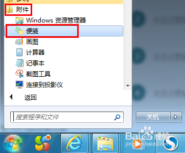点击“开始”菜单→“所有程序”→“附件”,就可以打开Win7自带的“便签”程序啦。