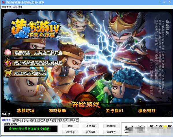 星空造梦西游4全能辅助是2016年最新免费的造梦西游4游戏修改器,此款辅助能够为玩家提供技能修改、人物模式、法宝技能、人物普攻、技能特效等实用功能。玩家通过该辅助能够掌控游戏节奏,感受造梦西游4游戏魅力,需要的话可以来下载使用。