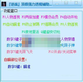 逆战顶级强力透视辅助是一款非常强大的逆战顶级强力透视辅助。人物透视、自动瞄准、自动开枪等功能带你装逼带你飞。