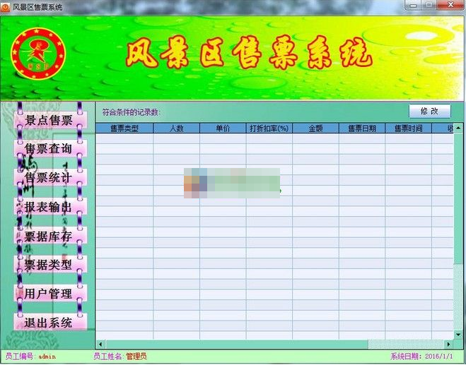 吴省平售票管理系统是一款非常专业的风景区售票管理软件。功能强大,使用方便。有需要的可以来天空下载使用!