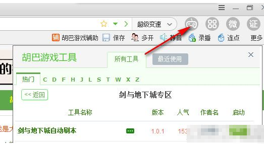 2.点击浏览器右上方的“胡巴剑与地下城游戏辅助”
