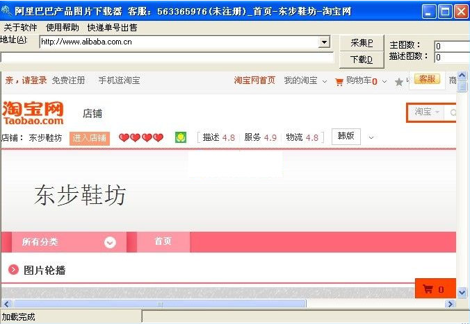 1.该款软件可以下载阿里巴巴产品的主图、颜色主图和描述图,并可按网页编辑的顺序把图片保存至本地电脑。