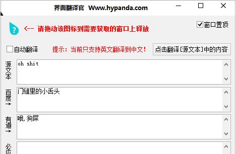 界面翻译官是一款功能强大、便捷实用的界面翻译软件,此款软件能够将文本翻译成其他文字,并支持百度、有道、必应三种翻译工具。