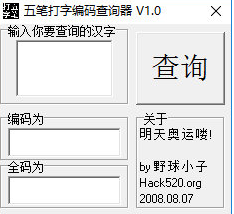 五笔打字编码查询器是一款绿色小巧的五笔编码查询软件,使用五笔的用户,只需要在查询器中输入要打的汉字,编码器通过五笔拆字,就可以查询改字的五笔编码。以后遇到不会打的字都不用怕啦!