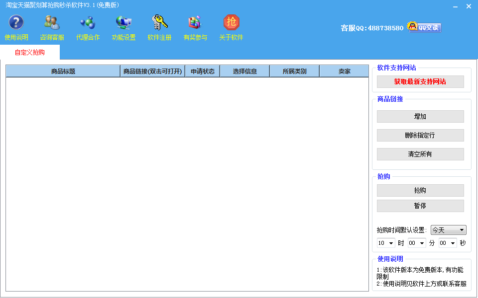 淘宝天猫聚划算抢购秒杀软件是一款非常易用、快速抢拍的一款抢购软件,软件只需要设置好需要抢购的商品链接以及商品的选择参数,比如颜色、尺码等就可以完成整点抢购,无需人为等待整点进行抢购,而且往往人为抢购根本抢购不到,而软件一旦检测到整点会立即快速抢拍,大大提高了抢购成功率而且还节约了您的宝贵时间,省时省力,软件是全后台抢购操作,一旦设置好商品参数,点击抢购即可最小化窗口,不影响您工作。