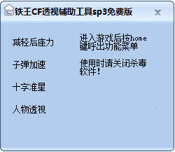 铁王CF透视辅助工具是一款非常不错的CF最新透视辅助。给玩家带来了减轻后坐力、子弹加速、子弹加速等BT功能。让你可以驰骋战场。欢迎下载使用!