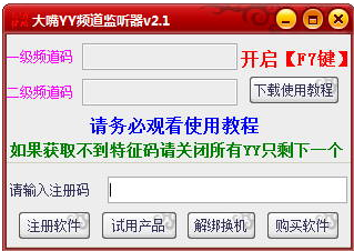 YY频道监听器v2.1最新版!支持不进频道偷听 【无视带密码频道】是不是无视带密码频道就自已去测试了~ 我只是简单测试了下普通频道可用【只需要鼠标冲着想监听的频道右键频道信息,然后按下F7开启即可!】