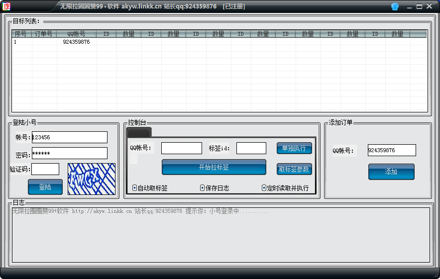 玩家可以使用无限拉圈圈赞99+软件帮助自己将赞刷到顶,本版本已注册,可免费使用。打开软件需登陆小号,除了可刷赞外,还可自动取标签、定时读取并执行等。