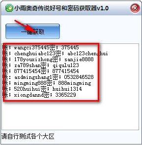 1.下载并运行软件,点击一键获取,便可以获得账号以及密码列表.