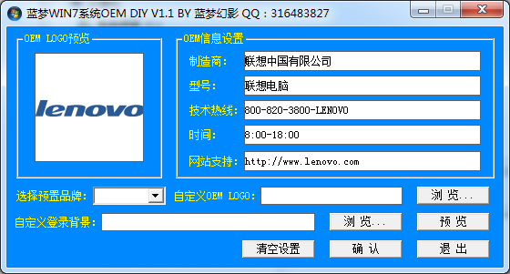 蓝梦WIN7系统OEM-DIY是一款不错的WIN7系统信息编辑软件。可以修改系统OEM信息,有需要的可以来此下载使用!