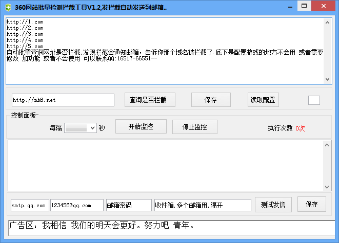 主要用于实时监控网站是否被360恶意拦截,如果发现网站拦截就发送邮箱进行提示。