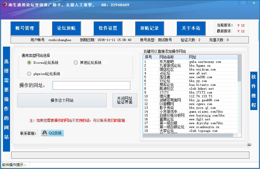 雨生论坛顶贴软件是针对各类论坛开发的一款自动顶贴的软件!现在论坛用户量庞大,您发帖子很快就会沉下去,这就需要用到我们这款雨生论坛顶贴软件,可以让您的帖子一直保持在版块的前几名,获取大量浏览量和点击率,是推广产品,打造影响力的不二选择!