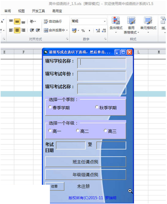 适用于高中各类考试的班主任统计和年级组统计,在microsoft office excel平台上进行操作,为照顾使用教师的习惯,界面没有作任何更改,只添加几个必要的操作