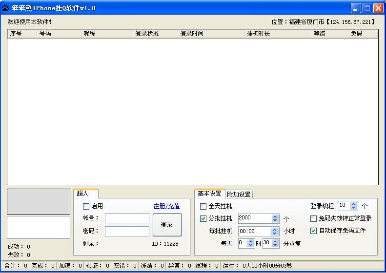 笨笨熊iPhone挂q软件是一款绿色小巧的由玩家笨笨熊制作的在电脑上挂iPhoneQQ在线的软件,该软件通过iPhone6s协议进行批量挂QQ,软件绿色小巧,操作简单,堪称一款2016年最新的QQ装逼神器,直接通过电脑来挂iPhoneQQ在线,在你的好友那边显示的就是iPhoneQQ在线,瞬间让你提升逼格。喜欢的朋友快来本站下载吧!