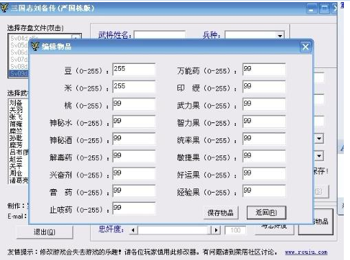 这个三国志刘备传修改器能够修改95%的MOD类型的游戏,例如岳飞传、东吴传、吕布传、轩辕传等等。修改的时候只需要把游戏的快捷图标用鼠标左键拉入调试器当中就能够轻松修改任何东西了。很强大的,连敌军、友军都能够轻松修改。使用很方便!纯绿色版。