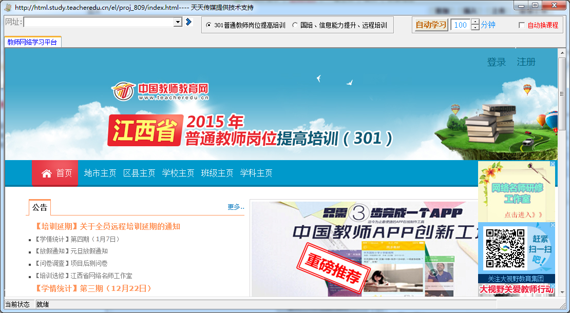1、此软件能用于中小学教师继续教育网挂机,支持自动更新学习时间