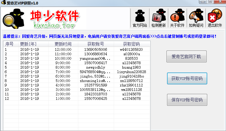 坤少爱奇艺VIP获取器是一款可以免费为你提供爱奇艺会员的工具。高清大片想看就看。有需要的可以来此下载使用!