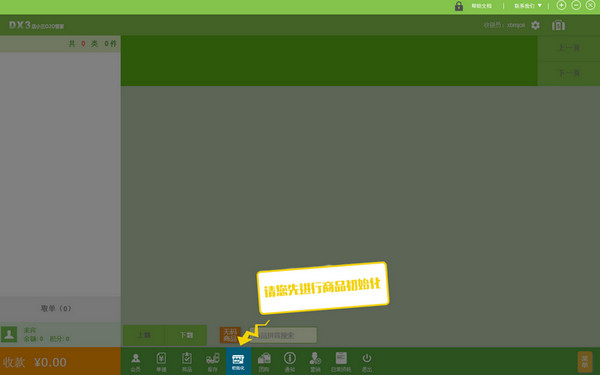 1、使用注册的收银员页面登陆账号登陆收银系统
