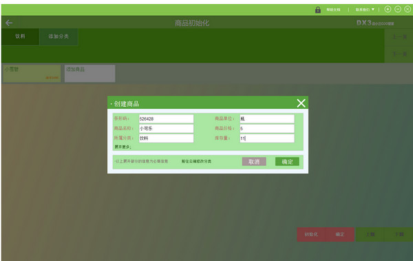 4、添加商品分类及商品 (记得点击确定保存哟~)(商户管理中心可批量导入商品,详见: