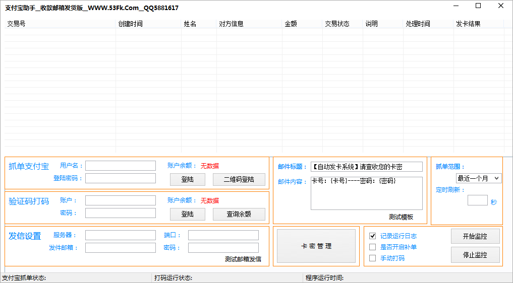 支付宝助手收款邮箱发货版是一款好用的收款邮箱发货软件。软件功能强大,操作简单。通过这款支付宝助手,就能提供用户自动判断商品类型、自动发送商品、自动发卡等多功能辅助,无需双手操作,大大提高发货效率。