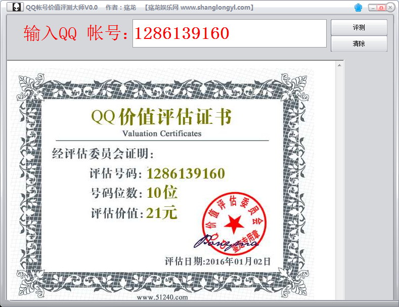 该软件仅供娱乐,QQ号的价值还是要依人而定,自己的账号上一般都有对自己来说十分重要的人,这些比QQ账号长度,靓号说明的价值高多了。