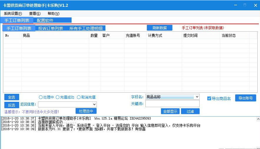 卡盟供货商订单处理助手是一款好用的订单管理系统。可以方便商家进行订单的处理,非常的实用。有需要的可以来此下载使用!