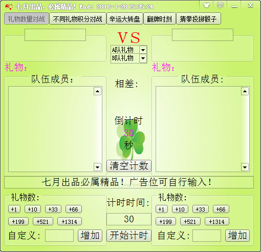 QT主播专用计数器是一款QT主播非常喜欢的计数器辅助工具,支持自定义皮肤/同礼物数量对战/不同礼物积分对战/辛运大转盘/翻牌时刻/猜拳/掷骰子等互动小游戏!颜值第一,功能强大!