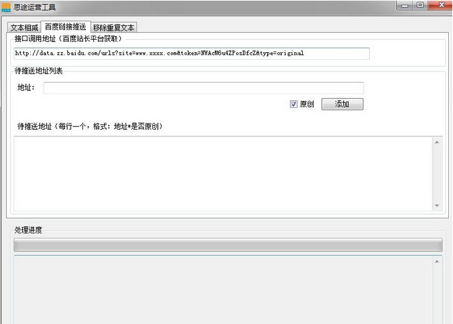百度链接提交主动推送小工具是一款站点链接推送工具。软件功能强大,操作简单。是一款好用的百度快速收录工具。该工具的作用是以最快速的提交方式,推荐您将站点当天新产出链接立即通过此方式推送给百度,以保证新连接可以及时被百度收录。提高百度的收录速度。
