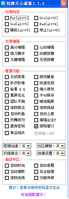 QQ炫舞天心辅助是一款非常不错的qq炫舞辅助器。支持全模式perfect,支持自动时尚S-3S自动答题,有需要的可以来此下载。