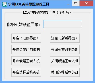 宁哥LOL英雄联盟游戏工具是一款非常不错的英雄联盟辅助工具。里面包括的都是一些比较实用的工具。欢迎下载。