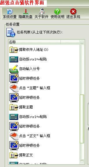 超强点击猫是当前国内唯一一款将各种常用操作完美结合于一体的动作模拟软件,是国内目前最为专业、最为强大的脚本工具软件,可以实现一切复杂操作的灵活组合和自动完成!有了超强点击猫,一切电脑前的重复动作和操作将不复存在!只有想不到,没有做不到——超强点击猫让您轻松体验自动化的完美境界!