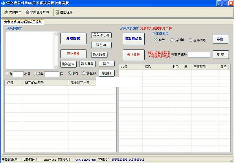 悟空竞争对手QQ关系群成员提取软件是一款绿色小巧的专门抢竞争对手QQ客户的软件,软件支持批量导入QQ号,批量提取对方的群和所加入群里的群成员,一天可收集同行业几百万数据,做网络营销需要的是精准数据库为前提,如没有数据库,那你营销谁,卖给谁,另外你今天卖了,过几天还可以接着卖,只要用户有需求!
