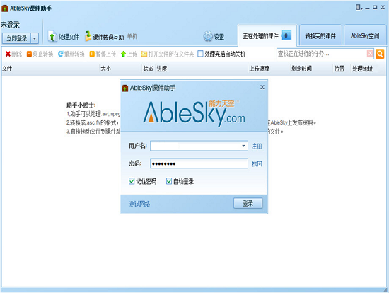 能力天空课件助手是一款集视频剪辑、转换与上传功能为一体的集视频剪辑、转换与上传功能为一体。功能更强大,使用方便。有需要的可以来此下载。