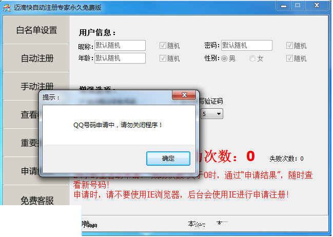 迈滴快qq批量申请器是一款可以帮助用户批量申请QQ号码的软件工具。无ip限制,非常的实用。有需要的可以来此下载。
