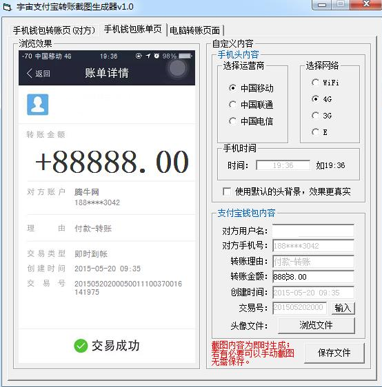 宇宙支付宝转账截图生成器