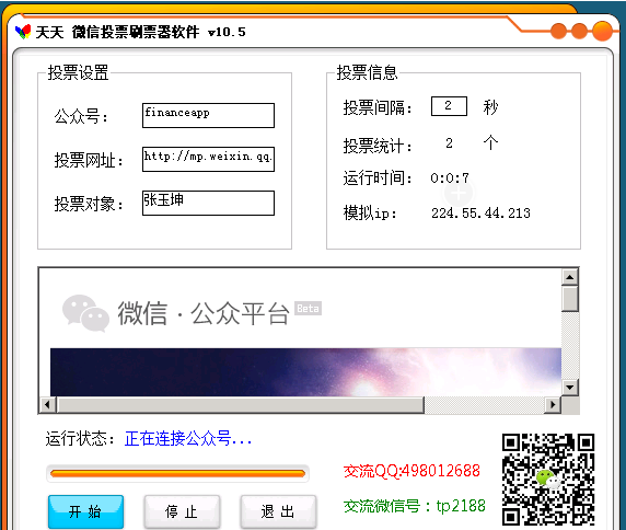 2.输入微信刷票的公众号、投票网址和投票对象;